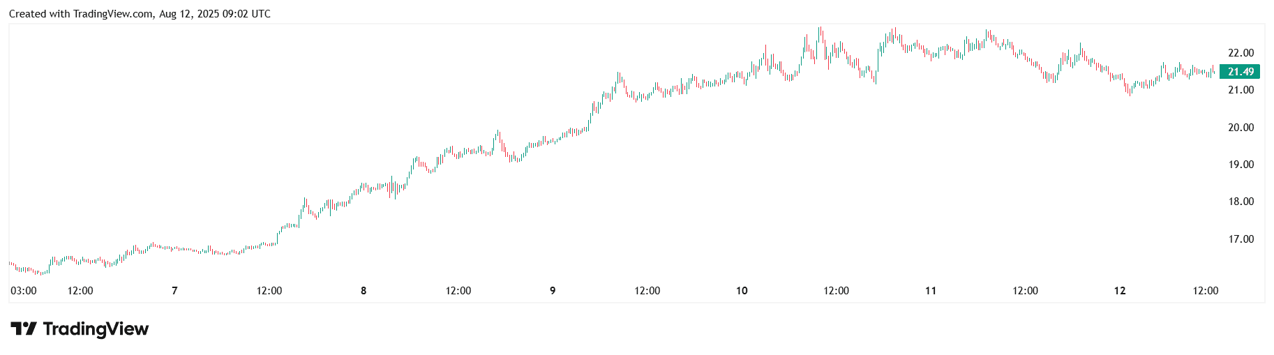 Токен LINK отреагировал на новость небольшим ростом. На недельном чарте его высота, в свою очередь, составляет более 25%.