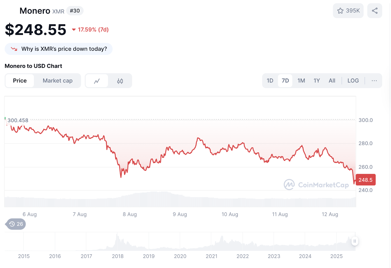 Что касается реакции рынка, XMR пережил значительное падение — примерно на 17%, и на момент написания статьи торговался примерно на уровне 248 долларов.