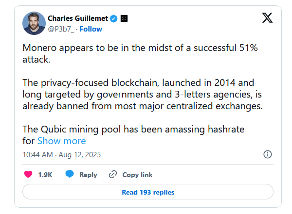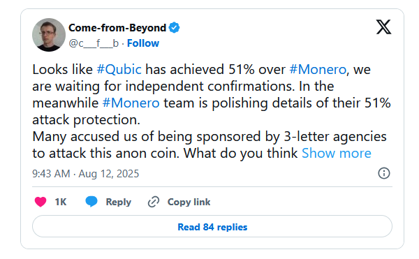 Qubic предложил значительно более высокие выплаты, чем обычные пулы для майнинга Monero, и привлек достаточное количество участников, чтобы преодолеть порог 51%.