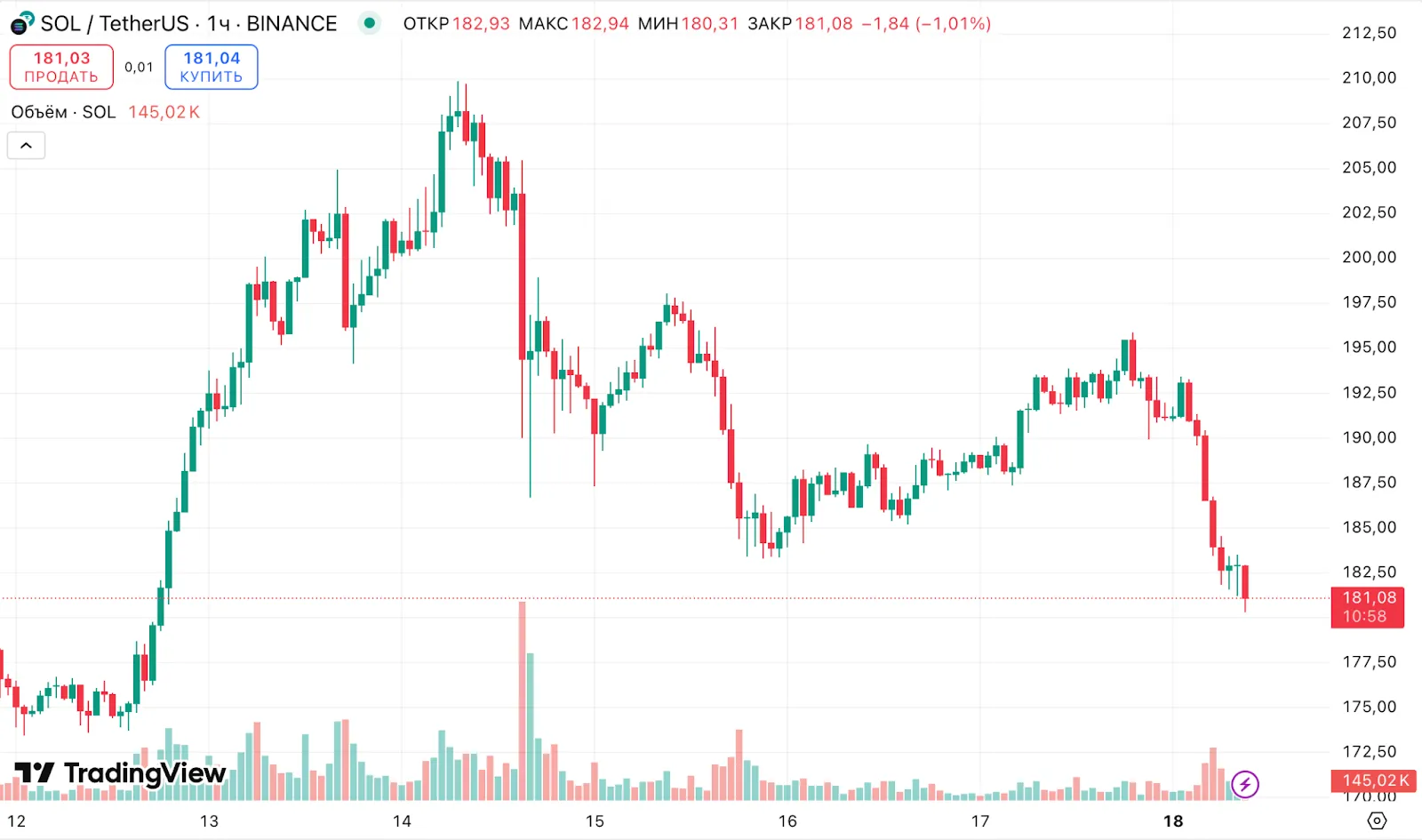 На момент написания нативный токен экосистемы — SOL — торгуется по $181. Согласно CoinGecko, за последние сутки он подешевел на 5,7% на фоне общей коррекции крипторынка.
