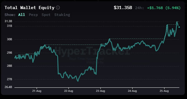 Пик общего капитала кошельков на Hyperliquid. Источник: Hypertracker