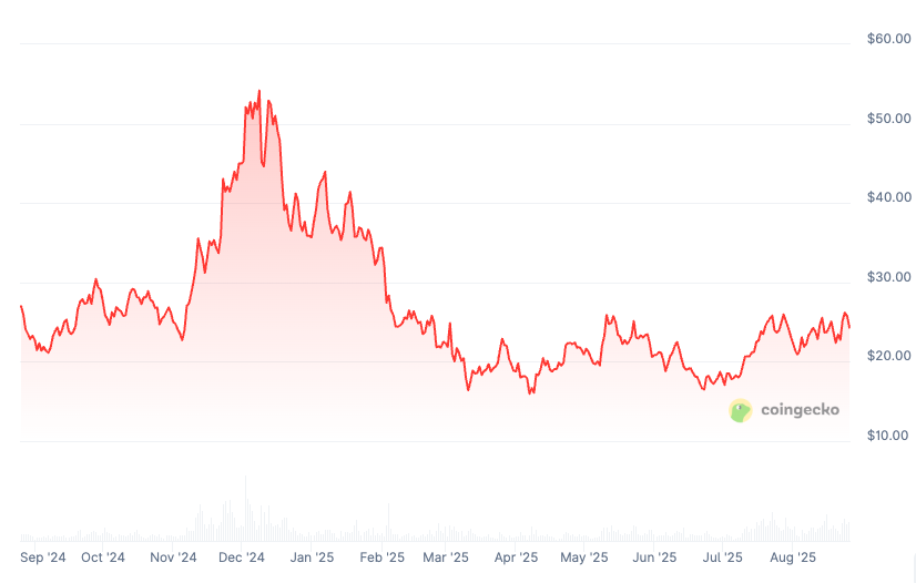 График цены Avalanche (AVAX) с сентября 2024 года. Источник: CoinGecko.