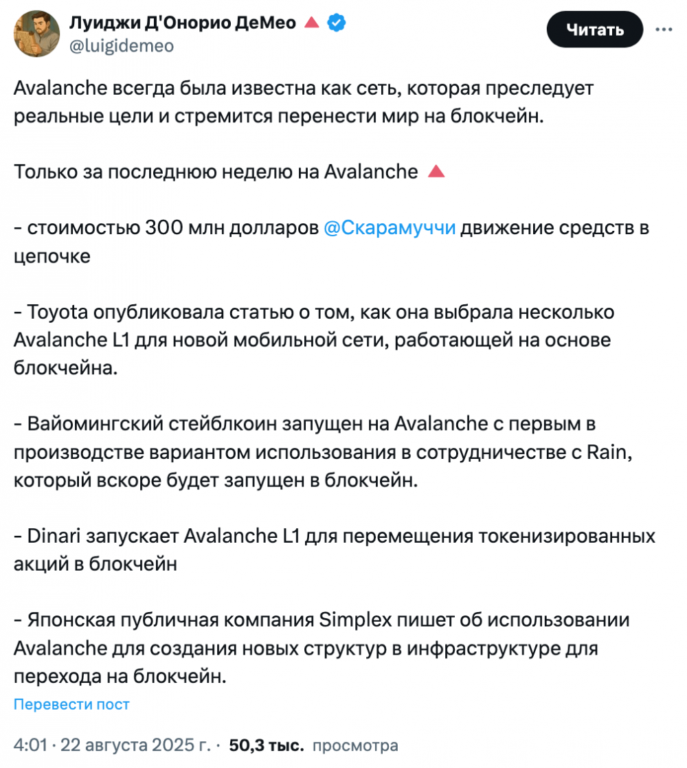 Источник: Луиджи Д’Онорио Демео, директор по стратегии Ava Labs