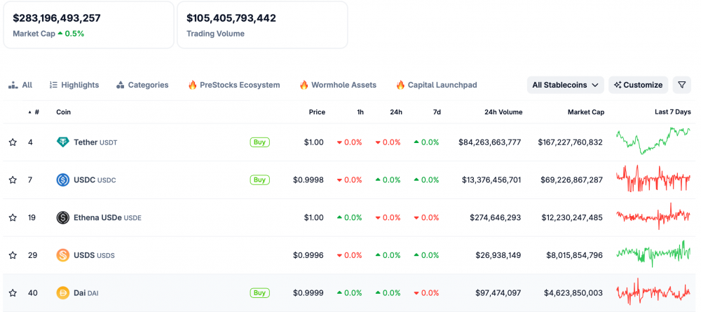 Ведущие стейблкоины по рыночной капитализации. Источник: Coingecko.