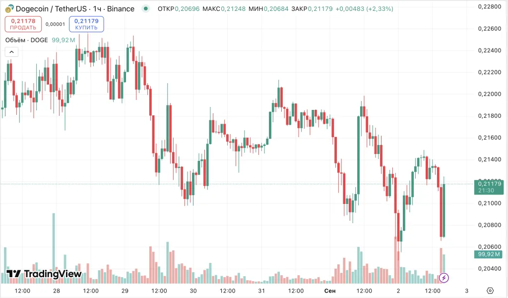 Курс мем-коина не отреагировал на новость. За последние сутки его цена снизилась на 2,6%. На момент написания актив торгуется по $0,21.