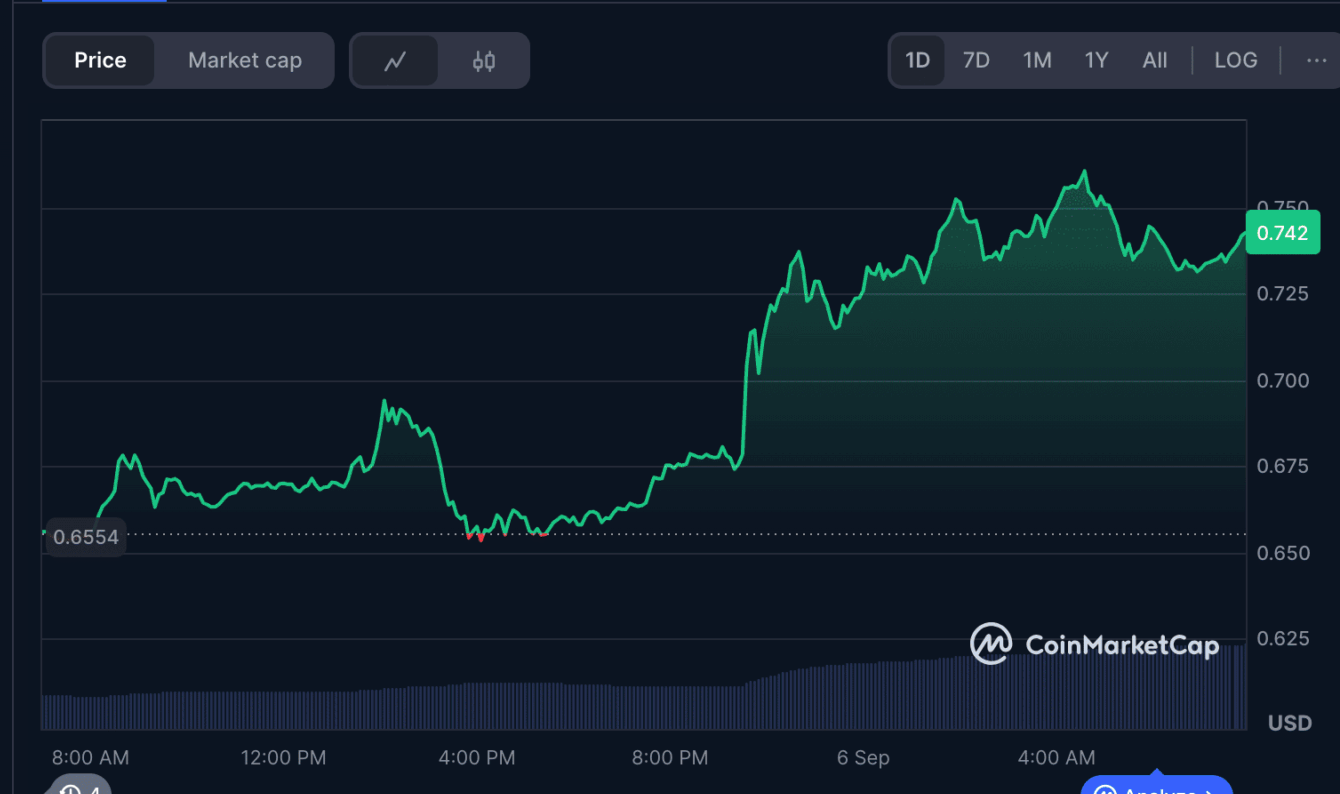 По данным CoinMarketCap, цена ENA выросла более чем на 12% за последние сутки, опередив рост большинства криптовалютных рынков. Объявление о запуске и недавняя программа обратного выкупа могли способствовать росту.