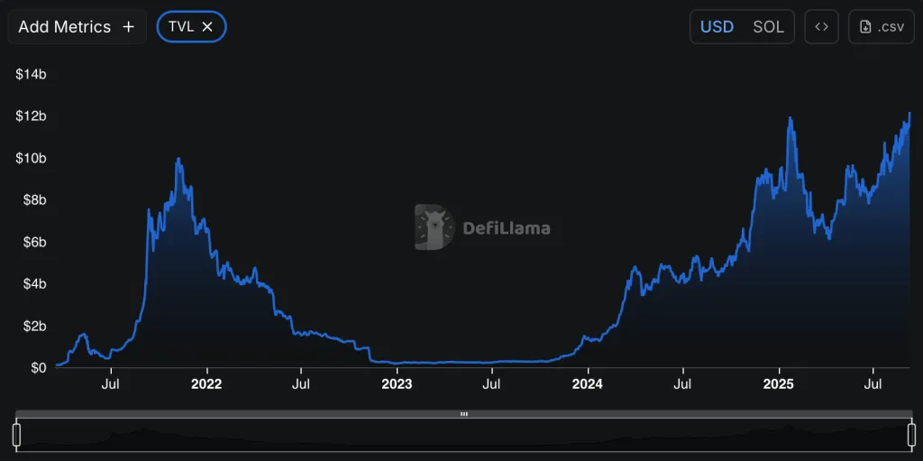 Одним из факторов роста стало увеличение TVL экосистемы — показатель достиг рекордных $12,2 млрд. Это на 57% выше июньских значений.