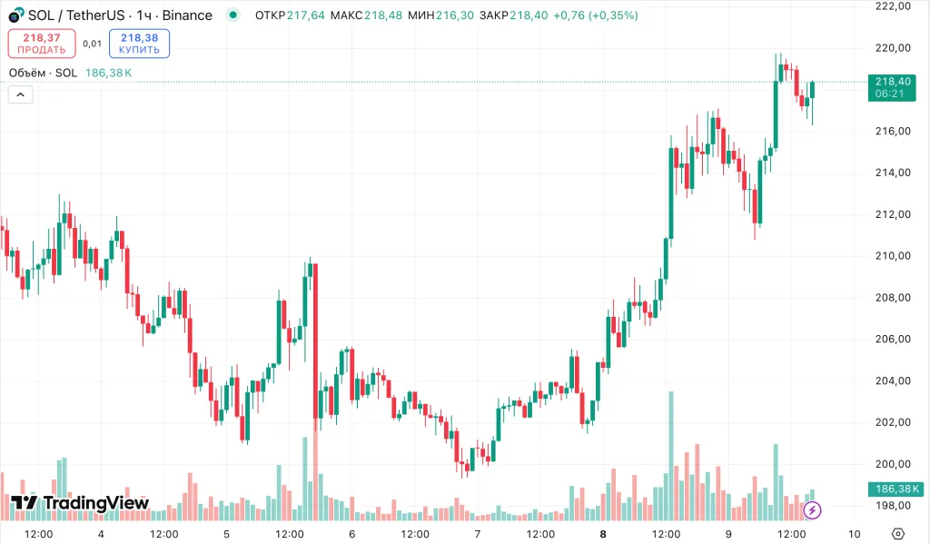 С 22 июня по 29 августа курс альткоина вырос на 70%, достигнув отметки $220 на фоне ралли Ethereum. Solana не удалось удержать этот уровень — цена криптовалюты скорректировалась до $200.