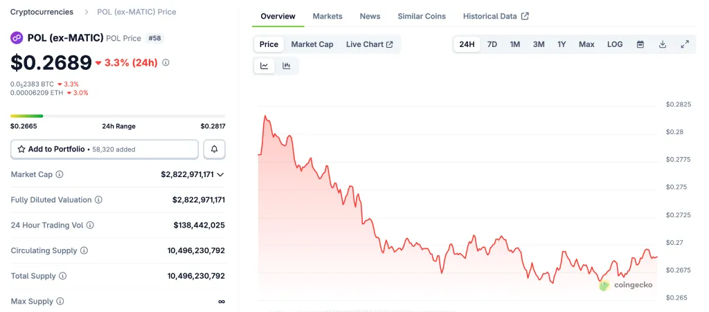Команда проекта пока никак не отреагировала на инцидент. На фоне случившегося цена нативного токена сети — POL — опустилась более чем на 3%.