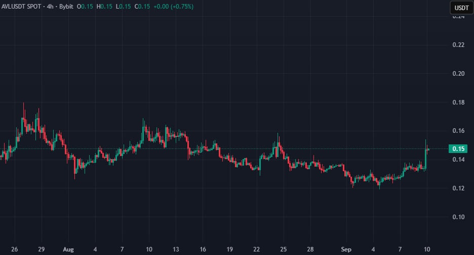 На фоне новости стоимость токена AVL выросла на около 10% за сутки. На момент написания актив торгуется вблизи отметки в $0,15: