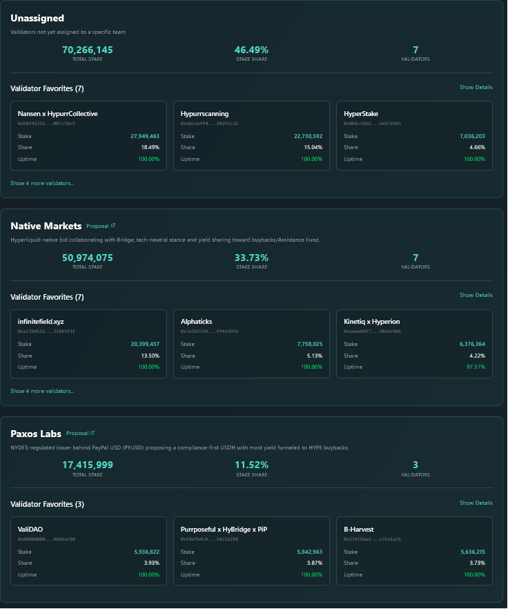 На момент публикации Native Markets занимала лидирующую позицию в голосовании, получив поддержку 33,73% делегатов. Компания, соучредителем которой является участник сообщества Макс Файге, предложила разделить резервные средства поровну между выкупом токенов HYPE и созданием фонда помощи. Это предложение вызвало неоднозначную реакцию в сообществе.