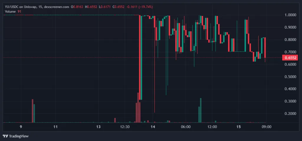 13 сентября цена YU на Uniswap обвалилась до $0,3. После нескольких попыток восстановить паритет с долларом курс на момент написания находится на отметке $0,65.