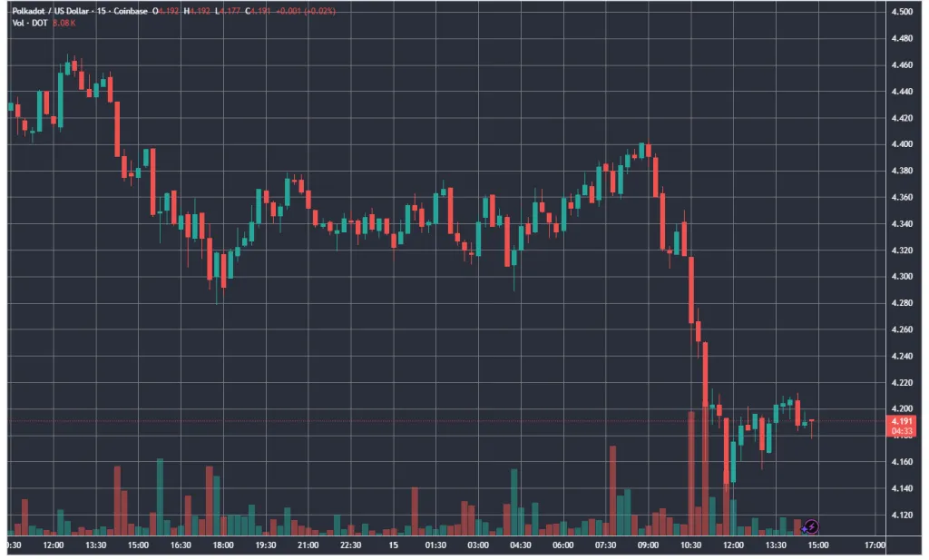 На фоне ограничения будущего рыночного предложения котировки DOT упали примерно на 5%. Актив торгуется на уровне $4,2. Это более чем на 92% ниже зафиксированного в ноябре 2021 года исторического максимума в ~$55.