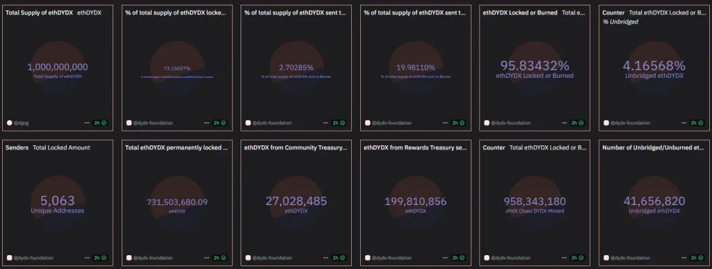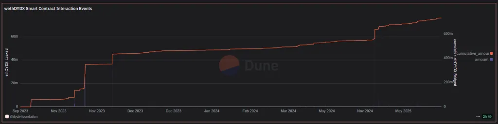 Около 41,7 млн токенов DYDX (~$26,2 млн по курсу на момент написания) формата ERC-20 оказались заблокированными в сети Ethereum после отключения кроссчейн-моста и вывода ликвидности из пулов.