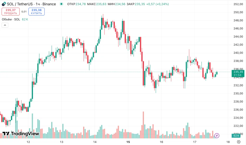 На момент написания криптовалюта торгуется по $235. За последнюю неделю ее цена выросла более чем на 7%.