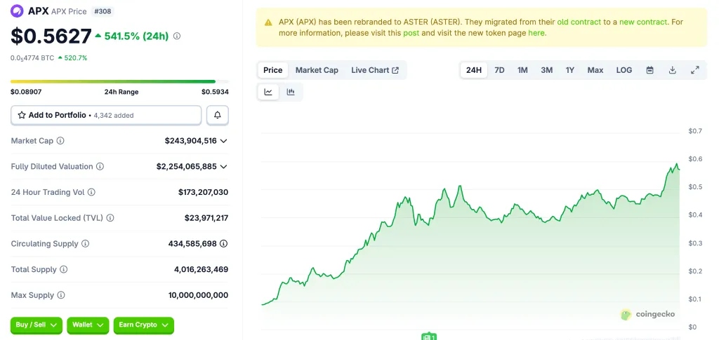 В начале осени этого года DEX объявила о запуске токена ASTER и аирдропе. Релиз состоялся 17 сентября. Держатели APX могут обменять монеты на новую криптовалюту.