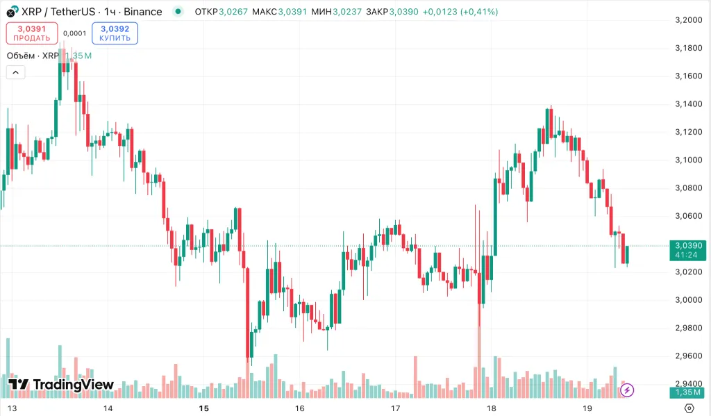 XRP подешевел на 1,4% за прошедшие 24 часа — до $3.