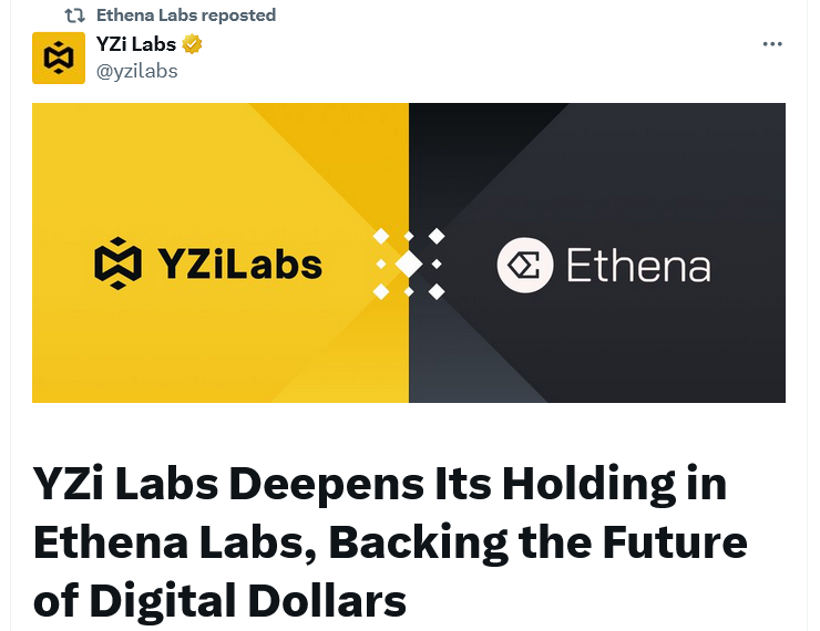 Компания YZi, ранее известная как Binance Labs, впервые инвестировала в Ethena в рамках своей инкубационной программы Season 6 в феврале 2024 года. Это произошло еще до публичного запуска USDe. Синтетический доллар USDe обеспечен преимущественно криптовалютами и стабилизируется благодаря дельта-нейтральной стратегии хеджирования, которая поддерживает его стоимость на уровне $1.