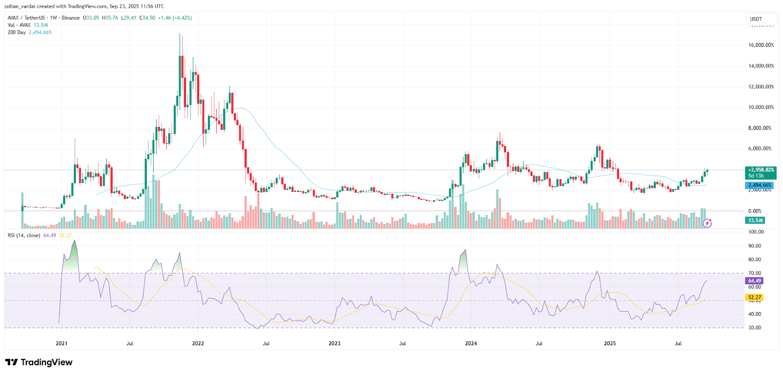Рисунок 3. AVAX/USDT, исторический график. Источник: TradingView.