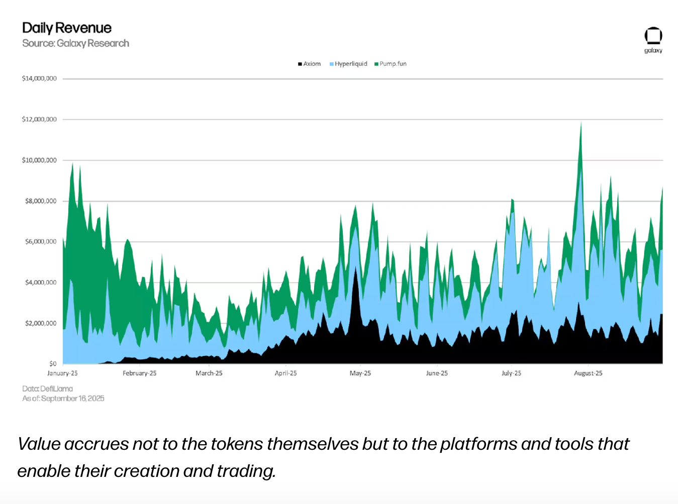 Мемкоины могут привлекать новых пользователей в блокчейны, но основная прибыль поступает на платформы, которые запускают и торгуют токенами, согласно новому отчету Galaxy Research.
