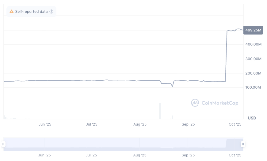 Рисунок 2. Рыночная капитализация A7A5 (A7A5) с мая 2025 года. Источник: CoinMarketCap.