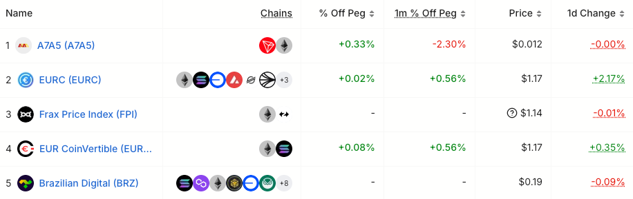 Рисунок 4. Пять крупнейших стейблкоинов, не привязанных к доллару США, по рыночной капитализации. Источник: DefiLlama.