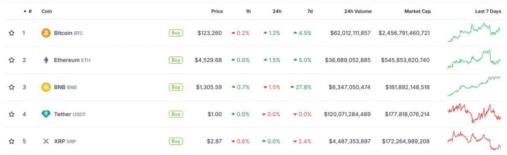 Рисунок 2. BNB стал третьей по величине криптовалютой по рыночной капитализации, обогнав Tether и XRP. Источник: CoinGecko.