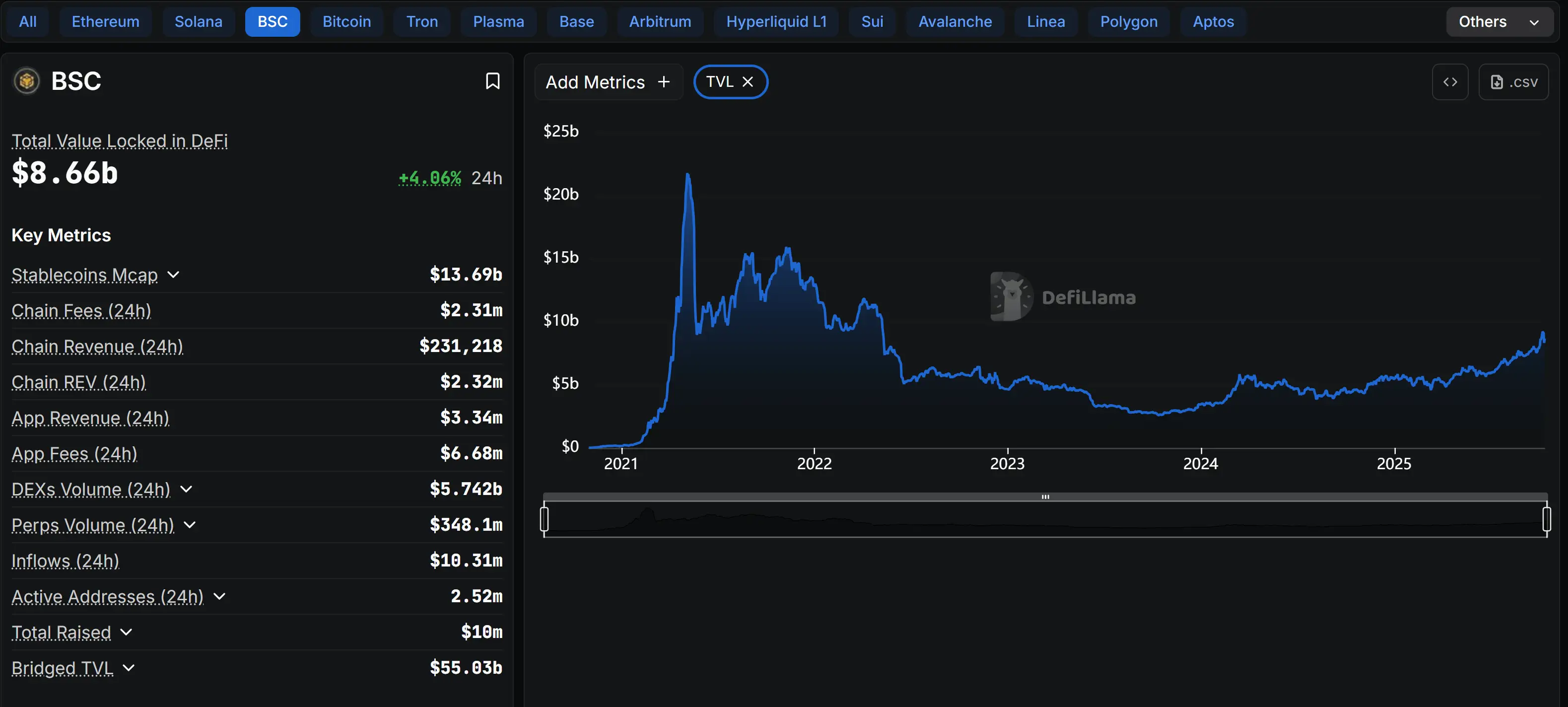 TVL BSC достигла $8,6 млрд. Источник: DefiLlama.
