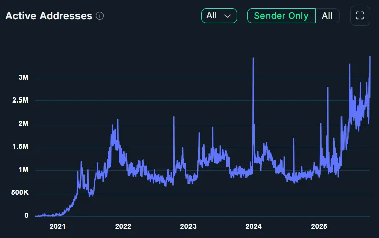 13 октября число активных пользователей в сети BNB Chain достигло исторического максимума в 3,46 млн. В тот же день нативный токен BNB обновил ценовой рекорд.