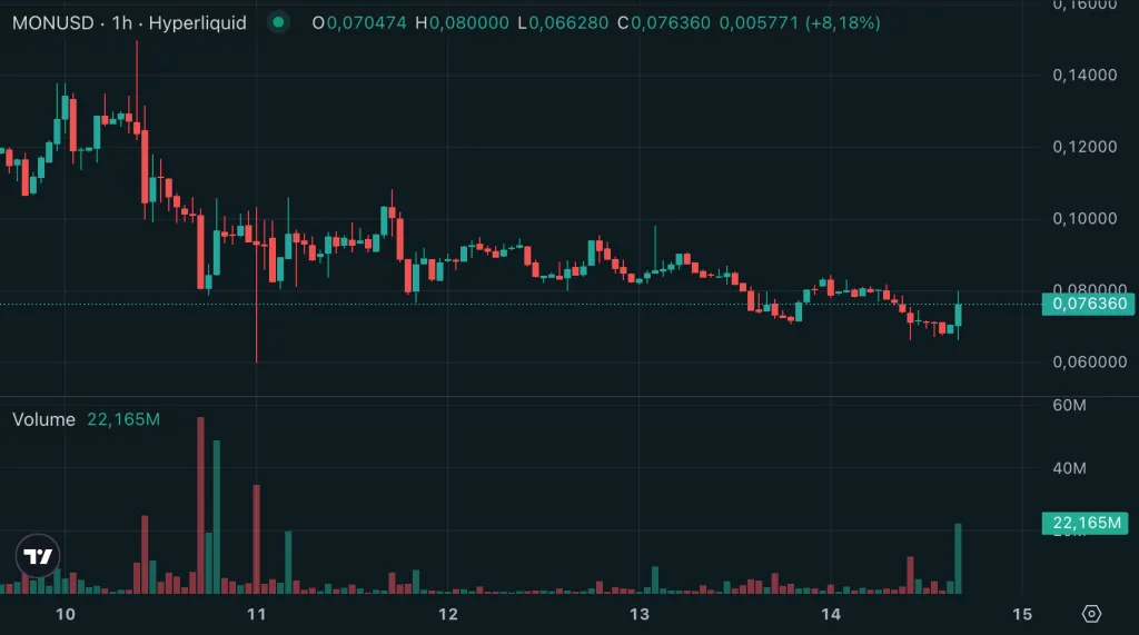 Бессрочные контракты на монету уже доступны на Hyperliquid. На момент написания цена составляет $0,07 при суточном объеме торгов в $5,9 млн. Открытый интерес достиг $7,7 млн.