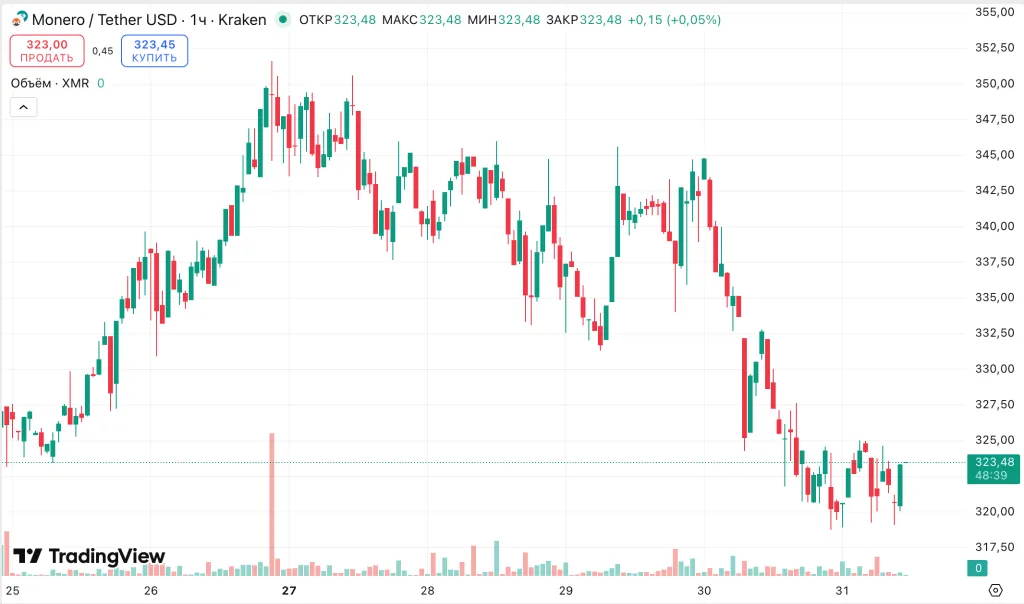 XMR показал более скромные результаты. За прошедшие 24 часа его курс опустился на 2,3%, но за 30 дней увеличился на 8,8%. На момент написания цена монеты составляет $323.
