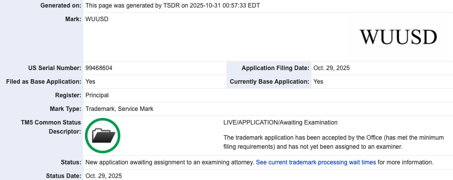 В описании указано, что торговая марка WUUSD может использоваться для криптокошельков, торговли цифровыми активами и обработки платежей в стейблкоинах, а также для других связанных продуктов.