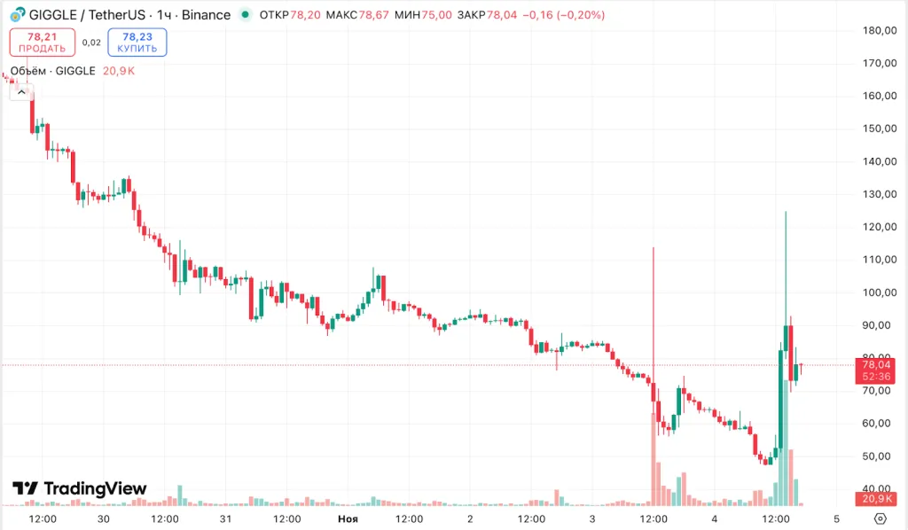 Мем-коин GIGGLE появился в сентябре — с тех пор его курс вырос более чем на 170%.