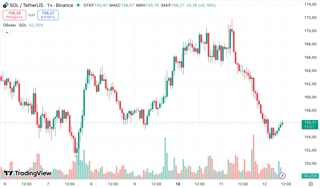 Пока положительная динамика инструментов не оказала значительного влияния на курс альткоина. На момент написания актив торгуется около $156. За последние сутки монета подешевела на 5%.