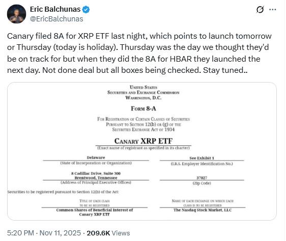 - Фонд полностью обеспечен реальными токенами XRP и готовится к листингу на Nasdaq 13 ноября.