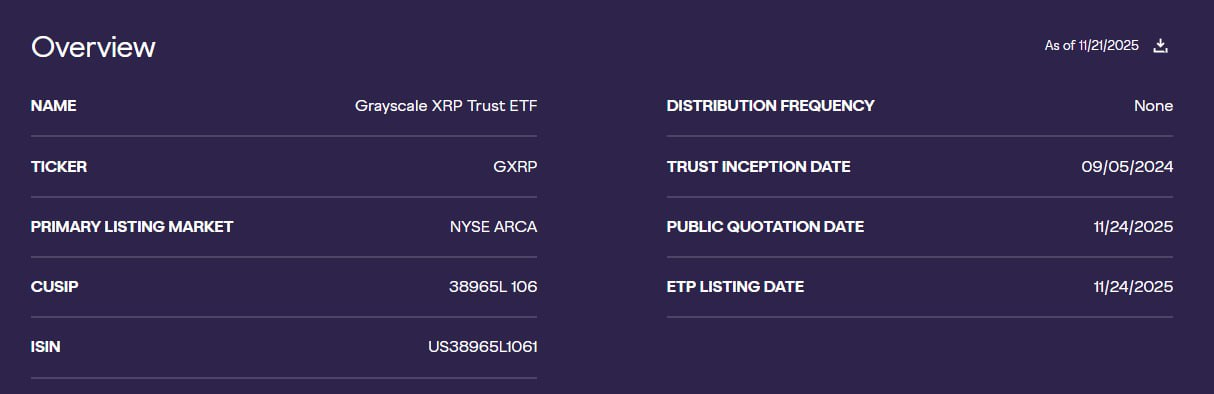 24 ноября также начались торги спотовыми ETF на базе альткоина XRP.
