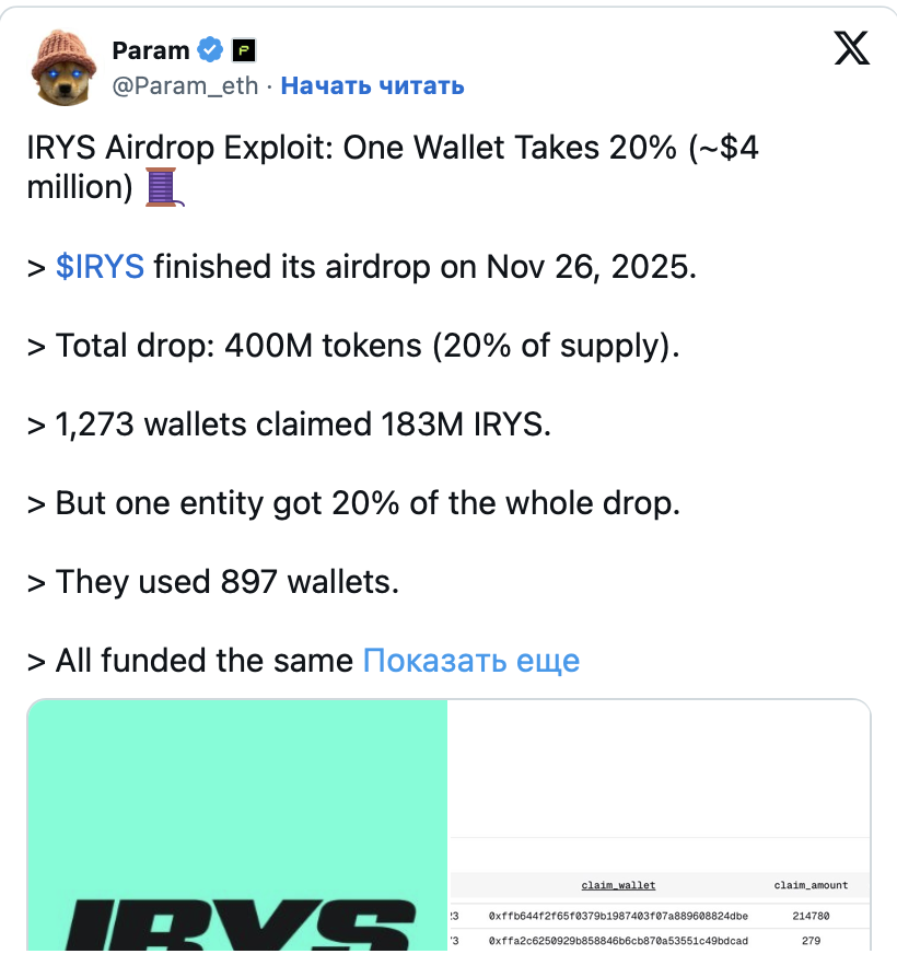 The post Один игрок получил 20% аирдропа Irys и вывел активы на биржу appeared first on BeInCrypto.