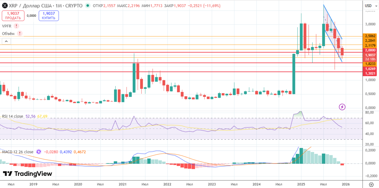 В преддверии 2026 года XRP испытывает трудности, опустившись ниже уровня $2, что далеко от ожидаемого рекордного максимума в $3,66.