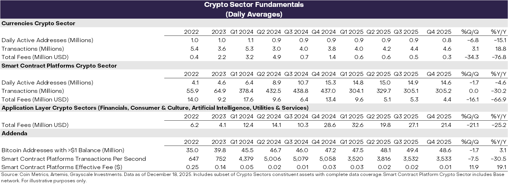 Фундаментальные показатели ончейн «здоровья» в октябре-декабре в целом ухудшились. Общая сумма комиссий на платформах смарт-контрактов снизилась в поквартальном и в годовом сравнении. Аналогичная тенденция к снижению наблюдалась в доходах на уровне приложений.