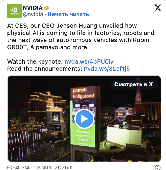 — NVIDIA (@nvidia) January 6, 2026