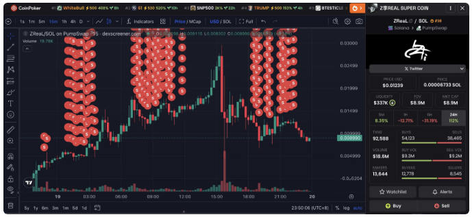Торги ZREAL происходят на фоне мини-сезона мемкоинов, о чем свидетельствует рекордный суточный объем торгов на популярной платформе для запуска мемкоинов Pump.fun, который в начале этого месяца достиг 1 200 000 000 долларов.