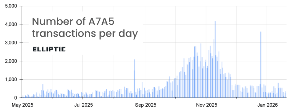 A7A5 запустили в январе 2025 года как стейблкоин с привязкой к рублю. По данным Elliptic, проект связан с компанией A7 LLC, которая обслуживает трансграничные расчеты российского бизнеса в условиях санкций. Формальным эмитентом токена указана Old Vector LLC из Кыргызстана, а обеспечение заявлено рублевыми средствами, размещенными в Промсвязьбанке.