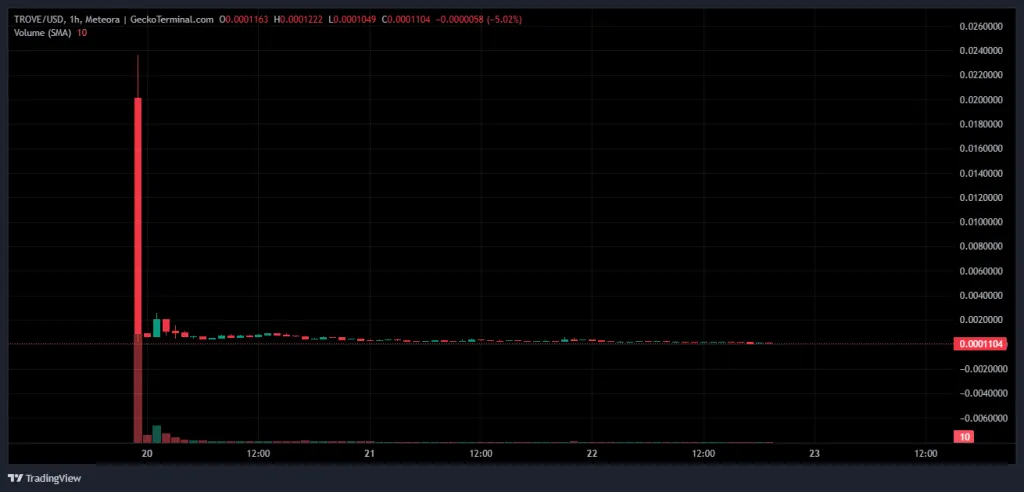20 января нативный токен perp-DEX Trove Markets (TROVE) обрушился на 98% спустя несколько минут после завершения ICO — FDV монеты упал с $20 млн до $110 000.