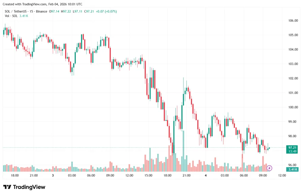 На момент написания $SOL торгуется по $97,21 (-5,8% за сутки).