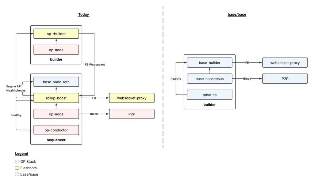 Сейчас код ключевых компонентов (например, секвенсора) распределен по разным командам и репозиториям, что усложняет поддержку системы. Новое единое решение base/base с использованием открытых компонентов вроде Reth позволит сделать архитектуру проще и эффективнее.