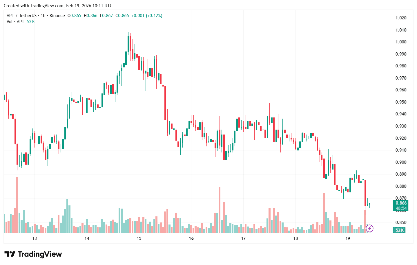 На фоне новости курс $APT просел на 1,6% на суточном графике. На момент подготовки материала актив торгуется по $0,86.