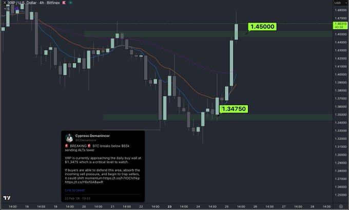 Однако аналитики предупреждают, что неспособность удержаться выше $1,40 может привести к обратному сценарию. В таком случае $XRP может скорректироваться к уровню около $1,35, где находится следующая зона потенциальной поддержки.