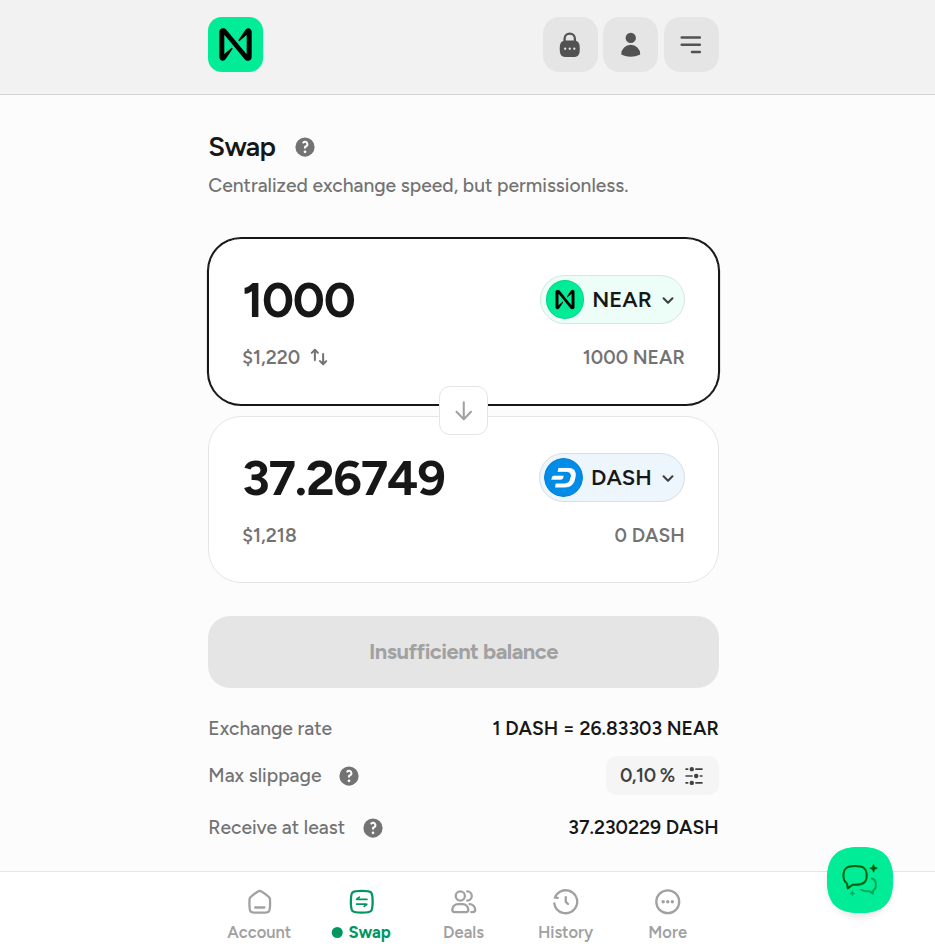 Активам нужен простой и децентрализованный путь к пользователю из разных сетей и приложений. Именно это и даёт интеграция с $NEAR Intents: становится проще получить или обменять Dash без зависимости от централизованных бирж.