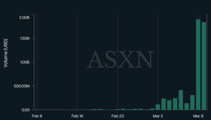 Более высокий оборот зафиксирован только в контракте на базе биткоина (BTC).