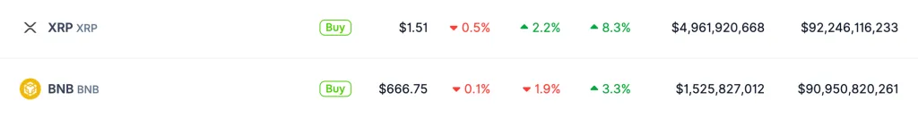 Объем торгов $XRP поднялся более чем на 60% за прошедшие 24 часа — до $5,2 млрд. Капитализация монеты достигла $92,2 млрд. По этому показателю токен опередил BNB, рыночная стоимость которого составляет $90,9 млрд.